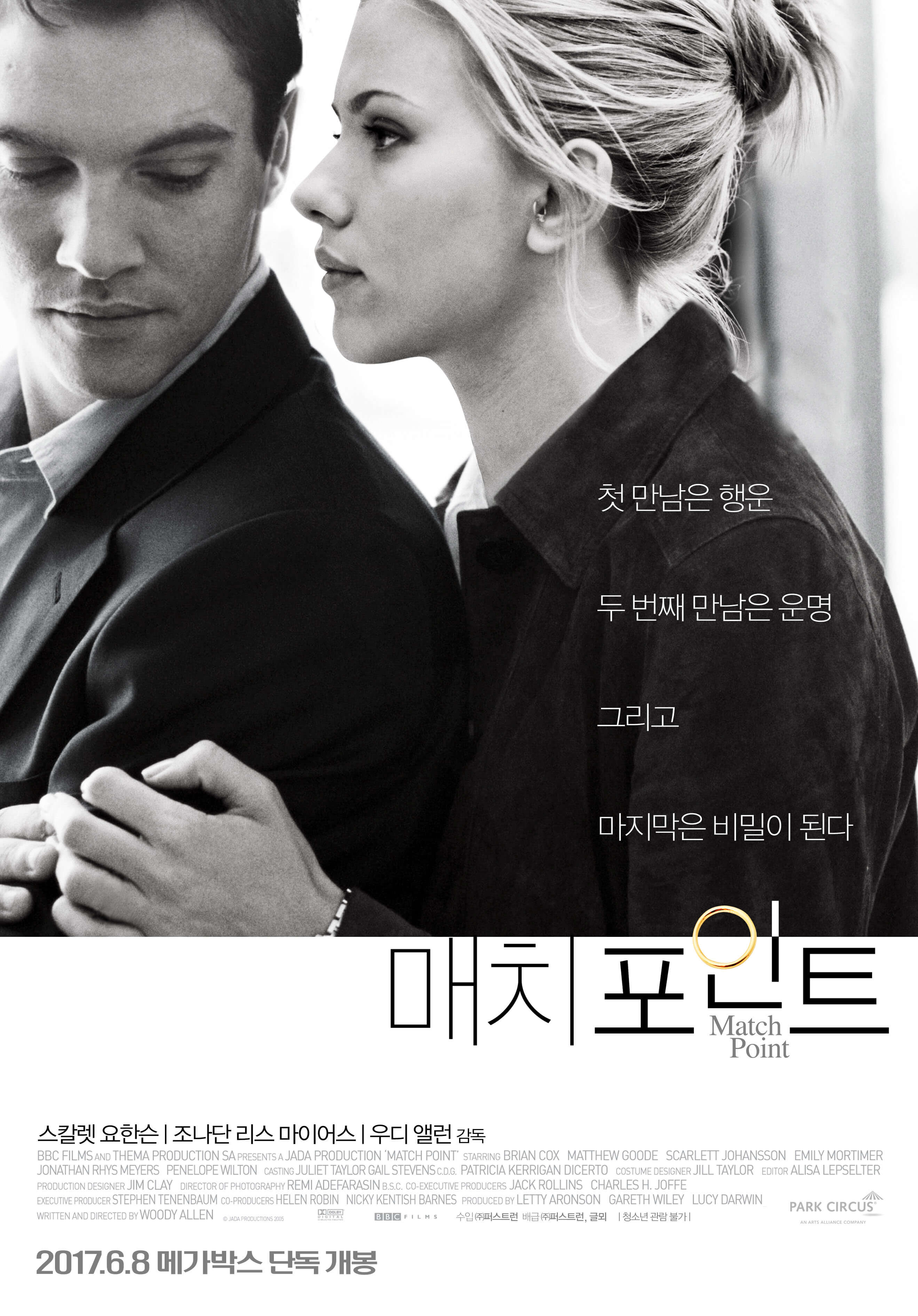 <매치 포인트>는 2005년 개봉한 우디 앨런 감독의 심리 드라마 영화입니다. 스칼렛 요한슨, 조나단 리스 마이어스, 에밀리 모티머, 매튜 구드 등이 출연합니다. 영화는 전직 프로 테니스 선수였던 크리스 윌튼(리스 마이어스)이 부와 권력의 세계에 빠지는 이야기를 다룹니다.